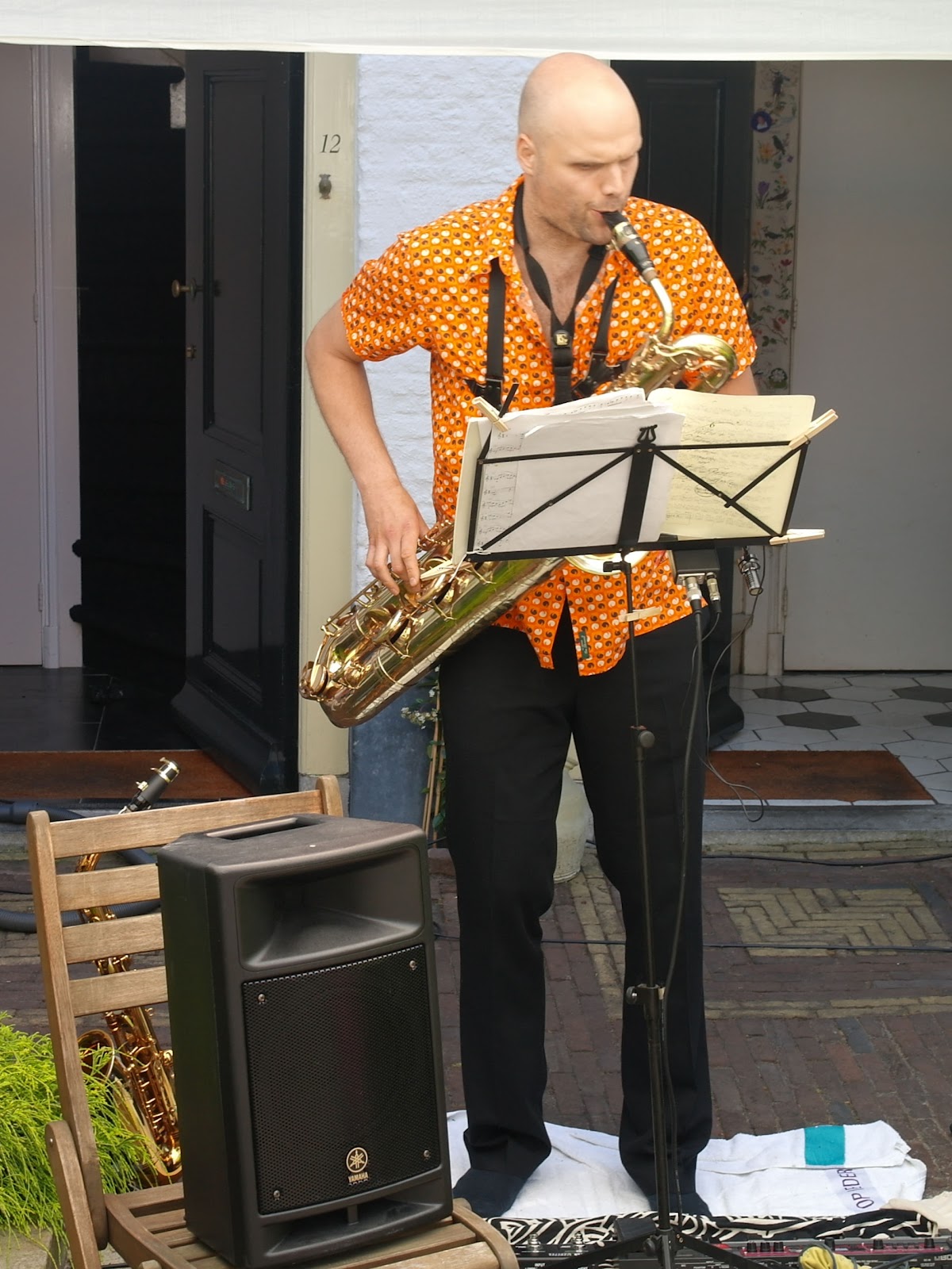 Soso Lakatos, winnaar van de Leiden Jazz Award 2012 in januari, speelt met zijn kwartet in de Francois Houttijnshof, maar het zonovergoten en piepkleine hofje blijkt een sauna, dus morgen nog maar eens kijken als in de Jan de Laterehof spelen. Bovendien is het Soso helemaal niet! Wel de rest van zijn kwartet.